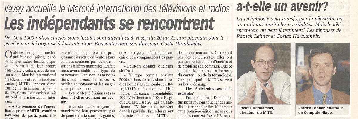 La première édition du MITIL (Marché international des télévisions et radios indépendantes et locales) a ouvert ses portes hier à Vevey. Au menu des professionnels venus essentiellement d’Europe : une bourse aux productions [...suite]