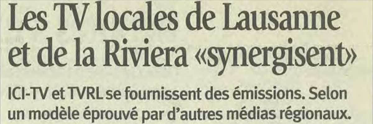 Un principe qui devrait vite s’instituer. Depuis deux semaines, une émission de TVRL (Larsen) est en effet diffusée régulièrement sur IC-TV. Et en juillet, l’expérience devrait encore s’étendre à la télévision locale bernoise et à Canal 9, la TV sierroise, sur une série de directs quotidiens les deux premières semaines de juillet pour le Festival de jazz de Montreux.